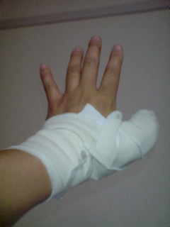 最初は「ちょっと腫れてるな」くらいだったのですが、妙に痛むので病院行ったら「全治三週間」だそうで・・・(爆)