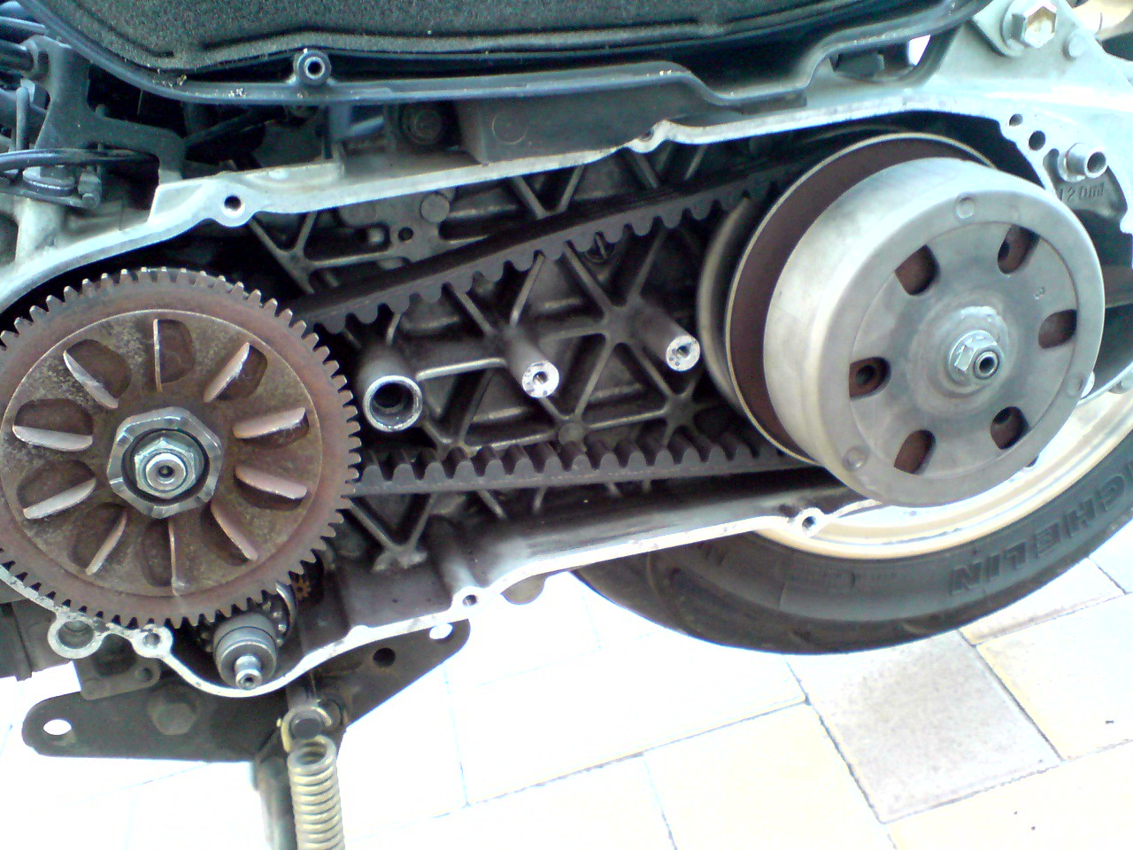 せっかく駆動系開けたので、一通りチェックはしましたが、ベルトの異常磨耗やプーリーの磨耗もなく、ピンピンしていました。
